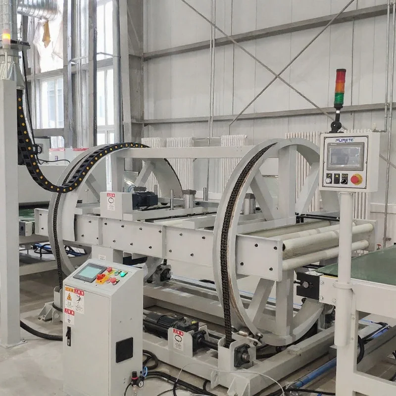- The now-flipped stack is automatically transferred onto the downstream conveyor, ready for the next operation.