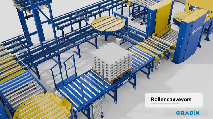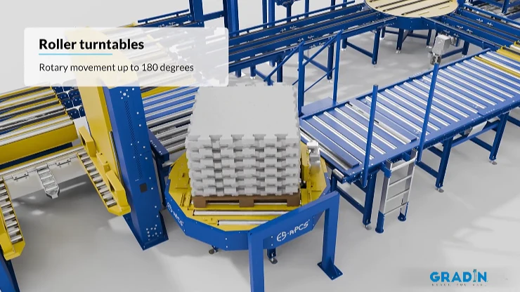 • 180° roller and chain turntables were equipped with sealed, low-particulate drives, enabling efficient, space-saving direction changes in high-traffic zones without manual forklift intervention.