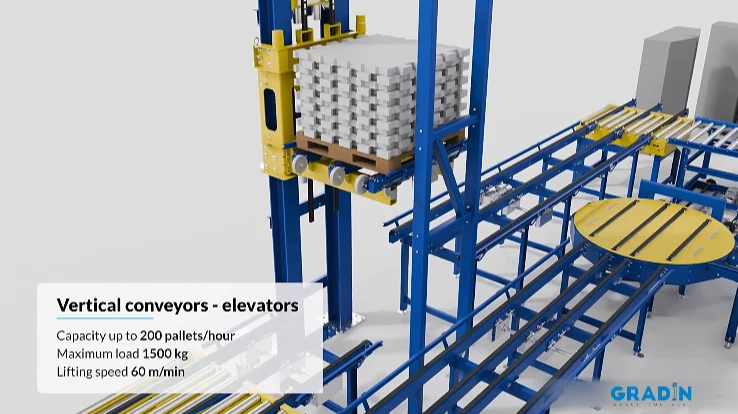 • The critical vertical conveyor (60 m/min lifting speed) was configured as a closed-system airlock. It features interlocked doors and differential pressure control to maintain segregation between warehouse and clean production floors, preventing airborne cross-contamination.